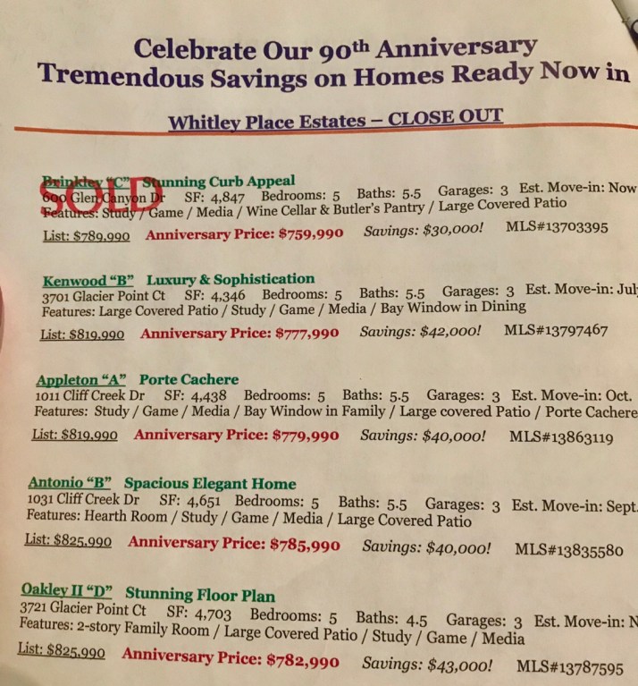 His signature custom home was huge, elegant homes built close to green belts. So I’m pretty sure with all of that experience he knew that Whitley Place would be a home run.