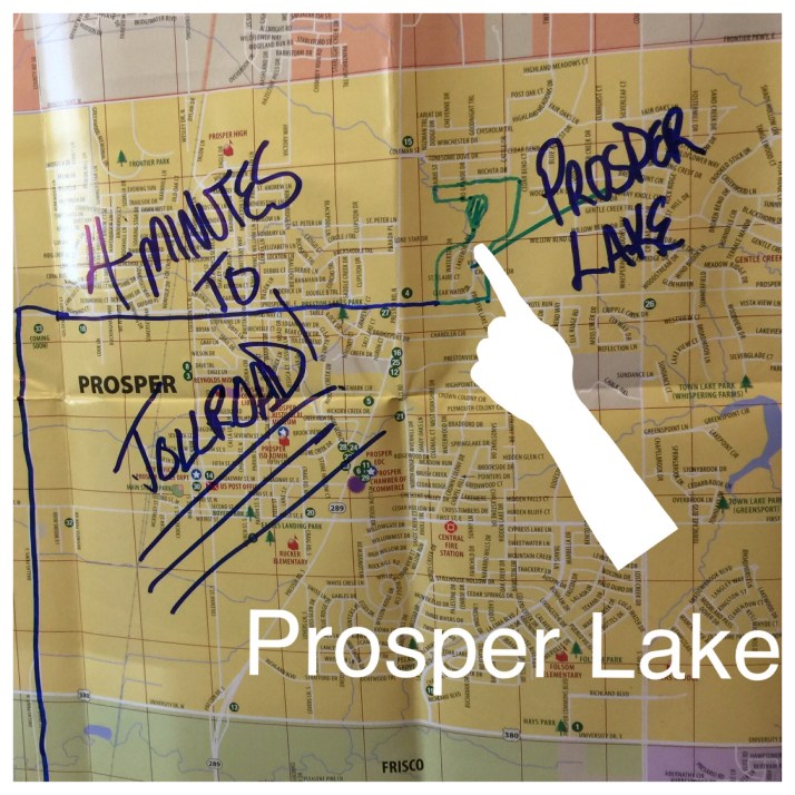 Prosper Lake is 125 homesites on around 75 acres developed right in the heart of Prosper! The closest major intersection is Preston Road and Prosper Trail Road which is only about a 2 minute drive! And the Tollroad is around a 4 minute drive