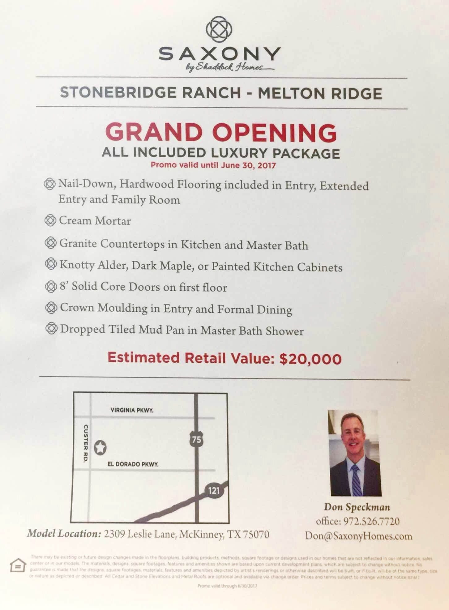 For more on the Estates of Rockhill in Frisco or Saxony Homes text or call Brad Holden at (469)733-2723 TODAY! And don’t forget to ask Brad about his “Best Frisco Rebate Program.”