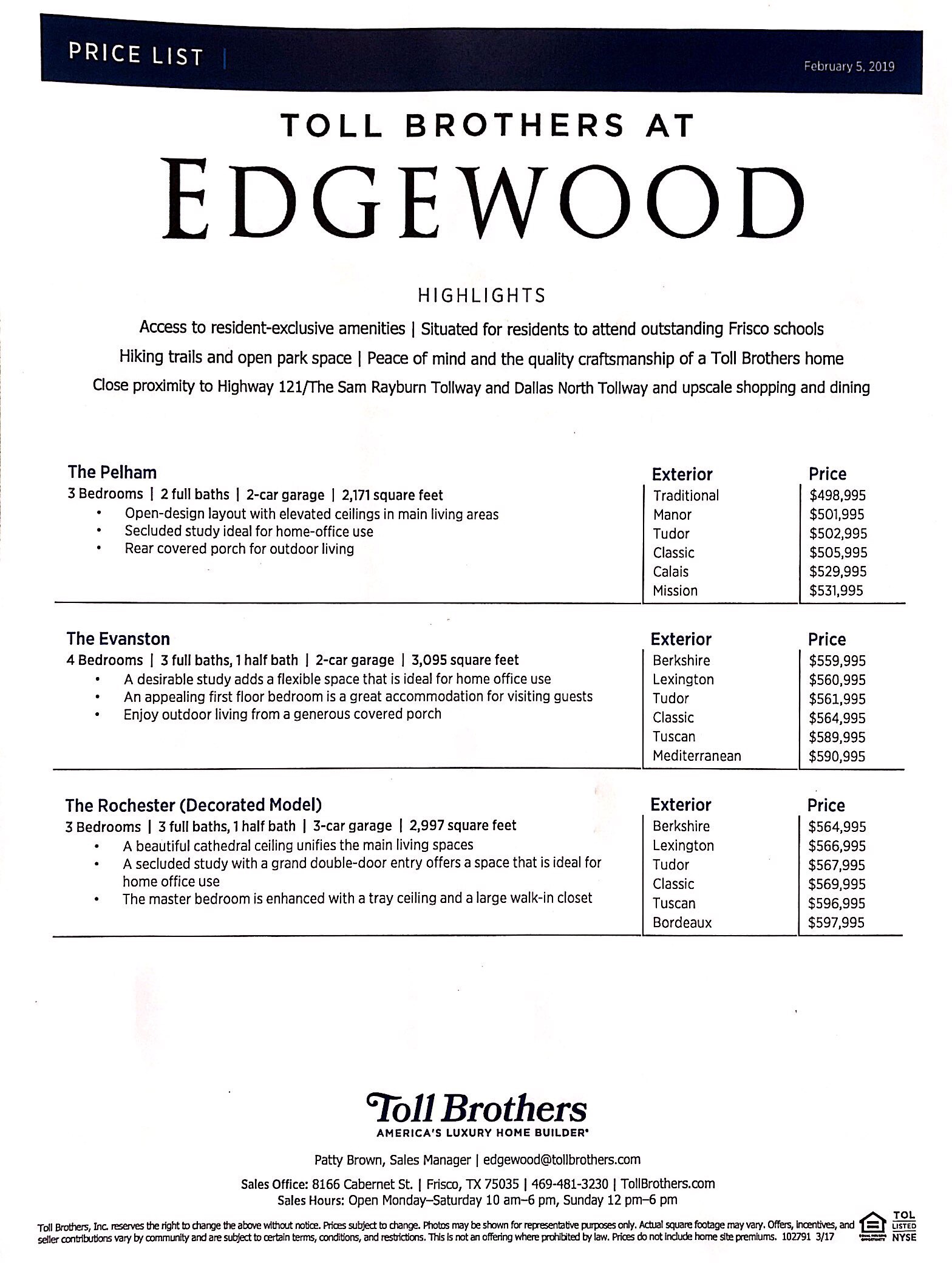 For more on Edgewood builders Toll Brothers, Southgate Homes and Meritage Homes text or call Brad Holden today at (469)733-2723.