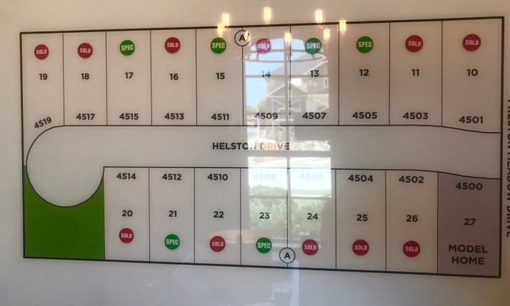 12 of the 18 lots are Sold, which leave 6 that are available. 1 of those 6 is the stunning Model Home.
