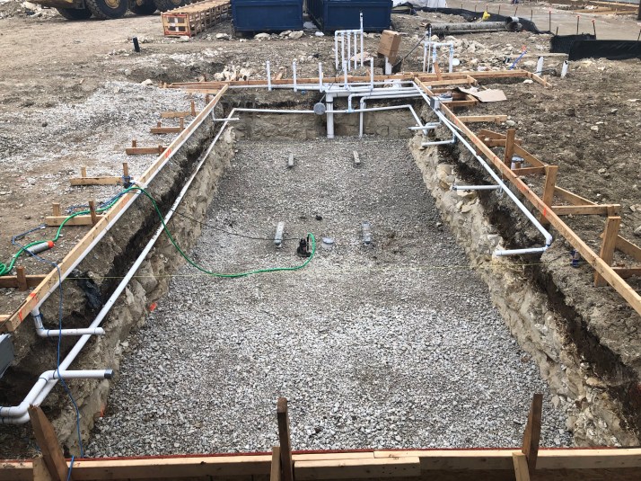 The clubhouse is almost complete as seen above and the pool has its form boards in the ground.