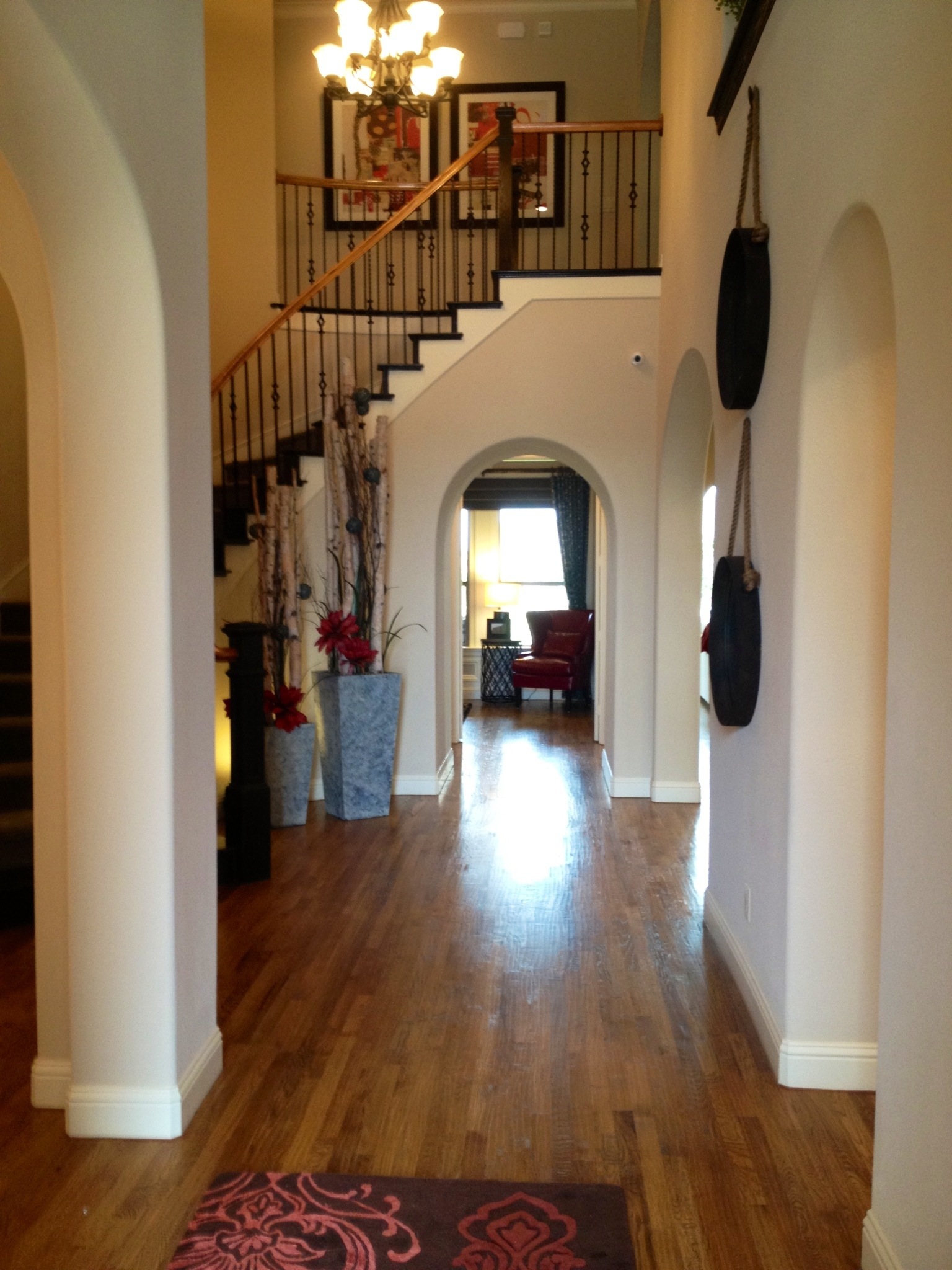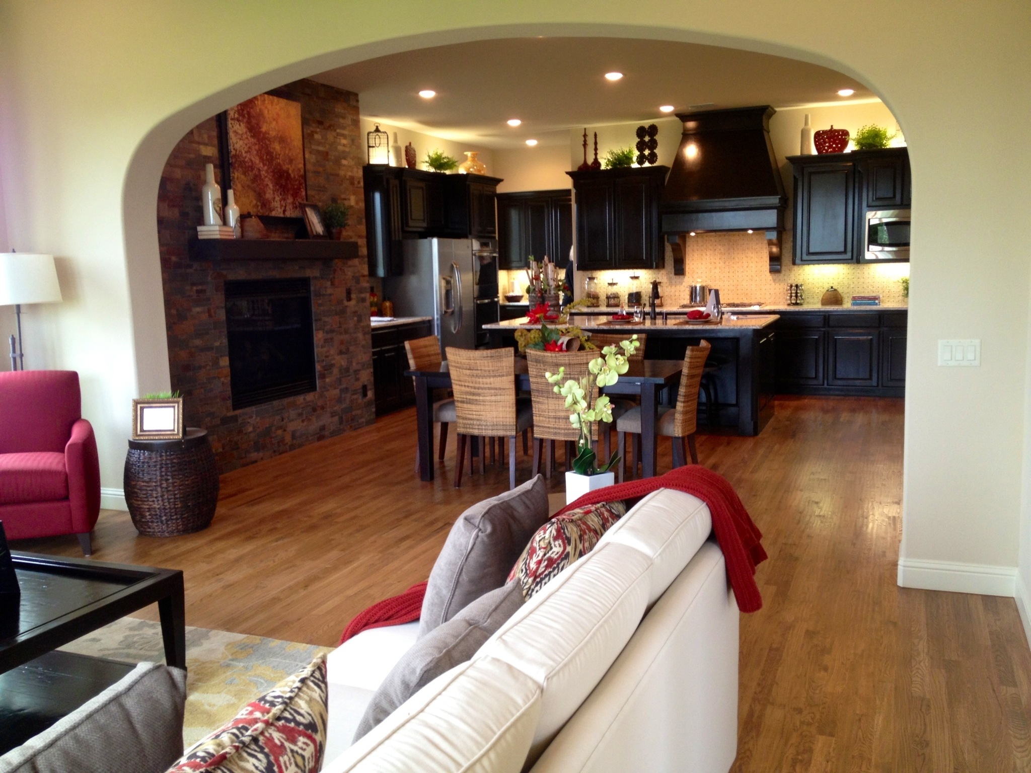 A very normal entry opens to a very open kitchen and living is amazing. Then you enter an open sitting room before the Master. (Just go walk it, you will see!)