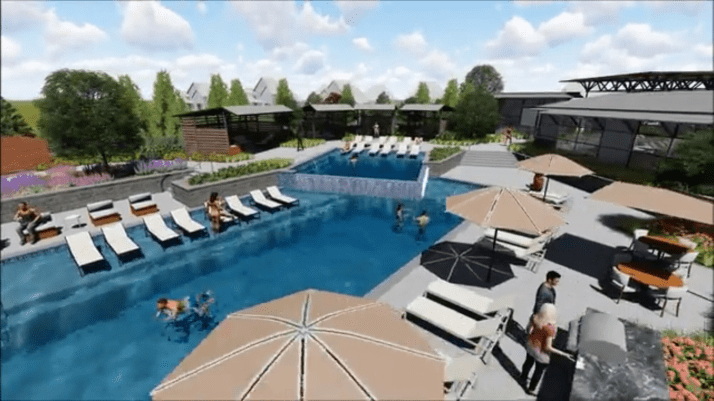 Current plans show a beautiful entry, large amenity center, a proposed city park in the floodplain, a long hike and bike trail by the mature trees and a man made pond.