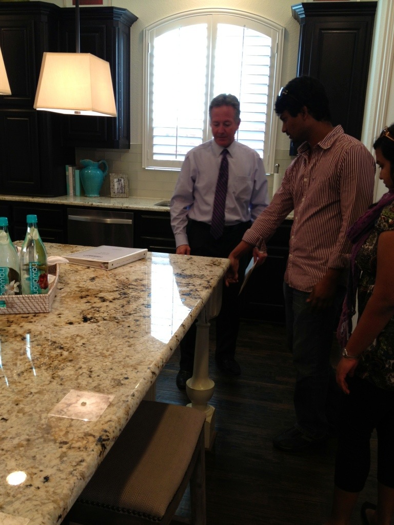 And lastly, as Steve Marion the Highland Homes salesperson is pointing out, the feet on the kitchen island are also standard. Huge plus.