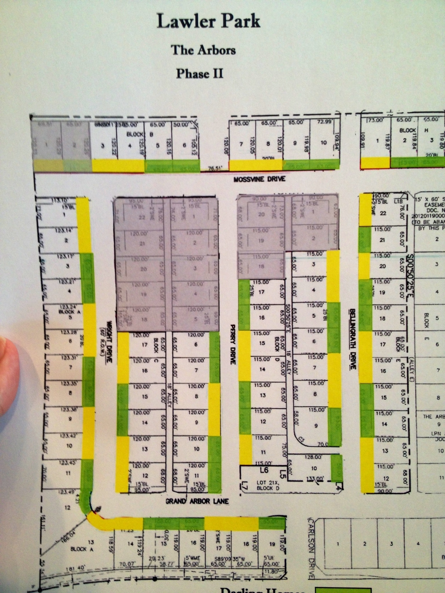 The Arbors of Lawler Park plans to have 64 foot wide lots.