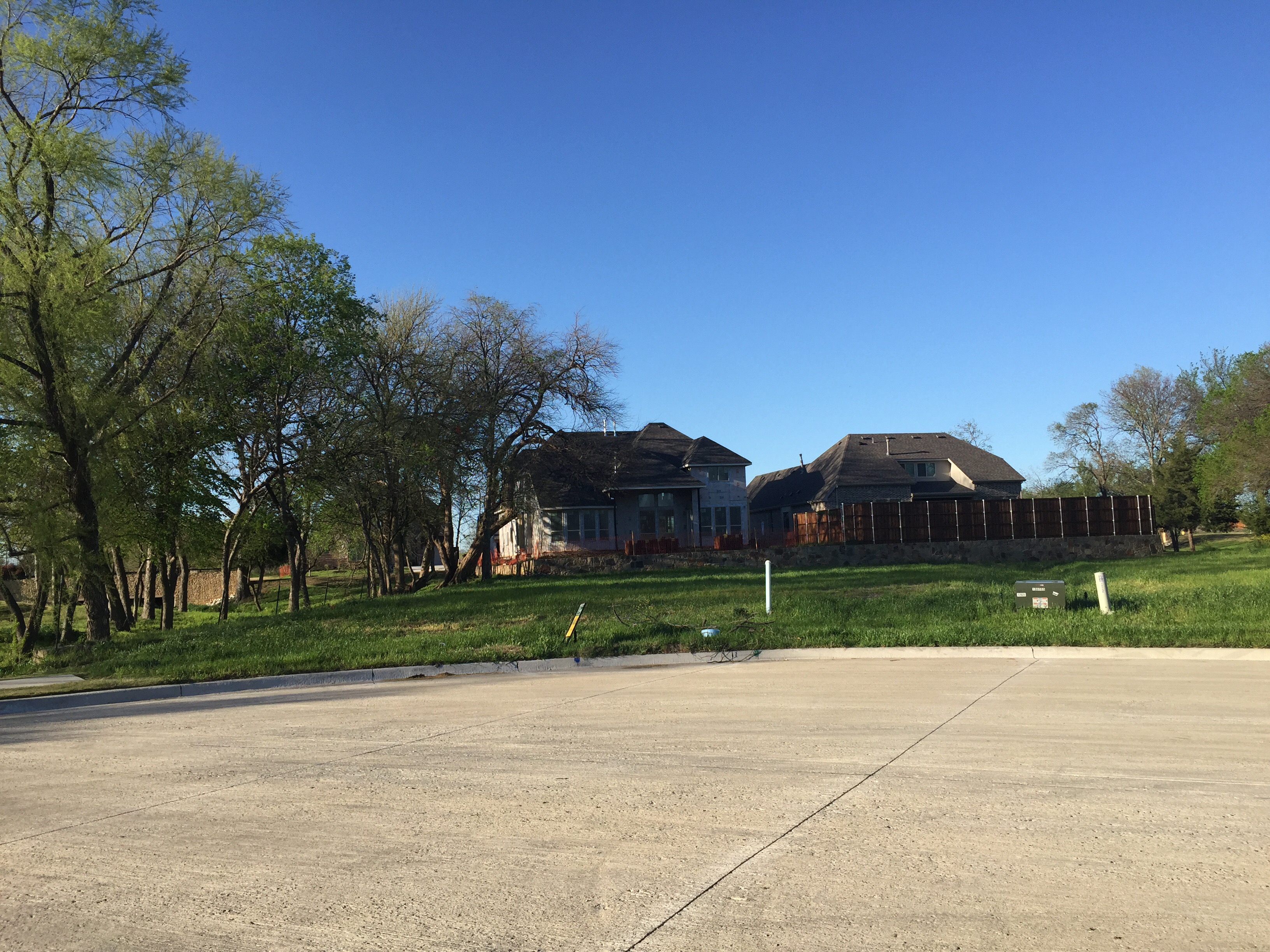 The two lots above are, by far in my opinion, the best lots available in Frisco! There were three on this cup de sac (total!) but one has already sold. The two that are available are also bordered by a creek, huge mate trees or both. They are also oversized and really will allow privacy that you cannot find in a new home community in Frisco!