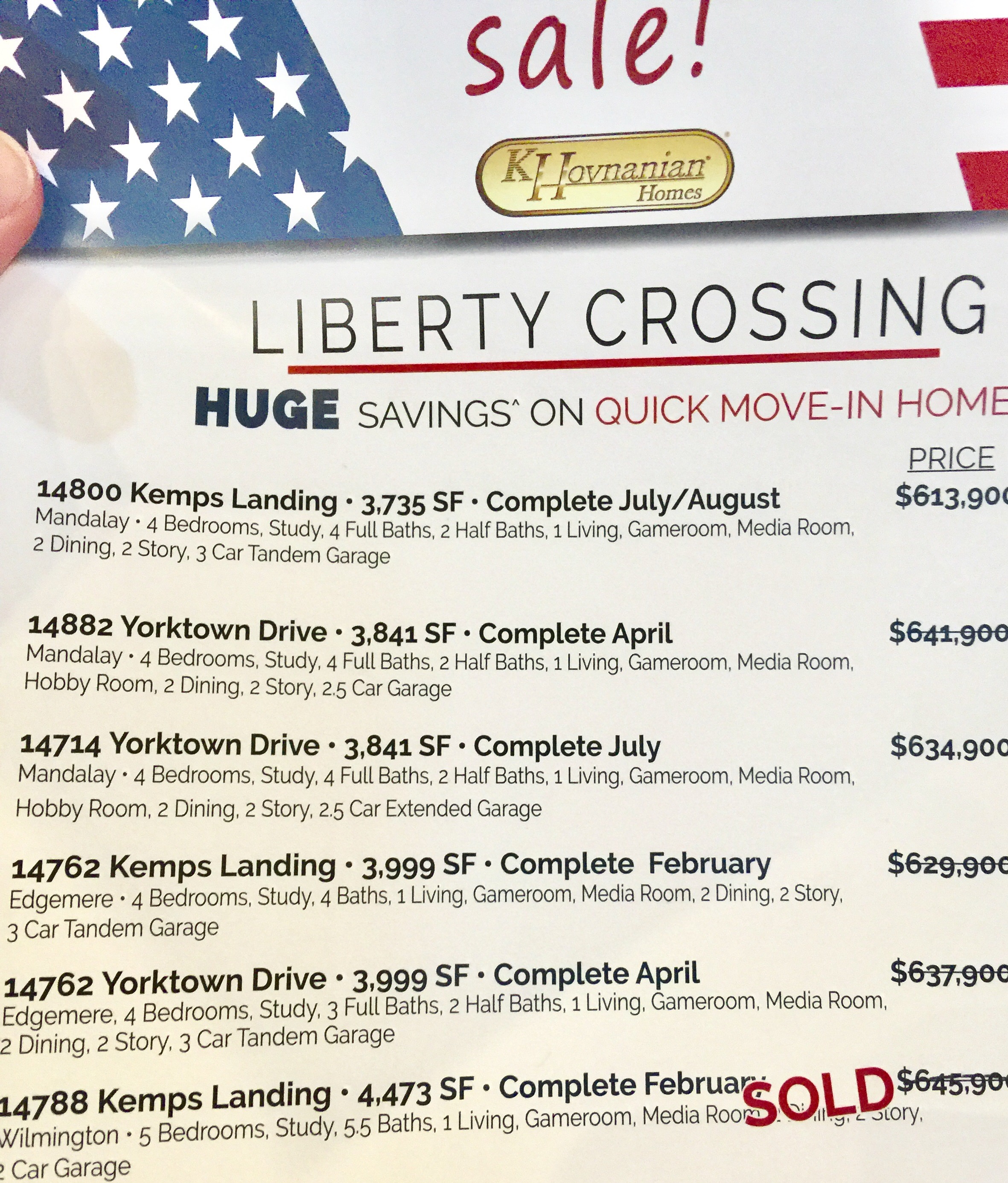 After weeks and months of waiting, K Hovnanian Homes opens Liberty Crossing for sales! Yes!