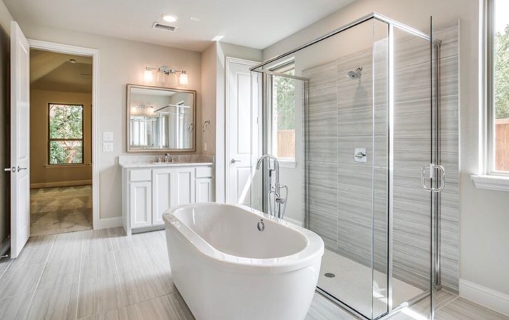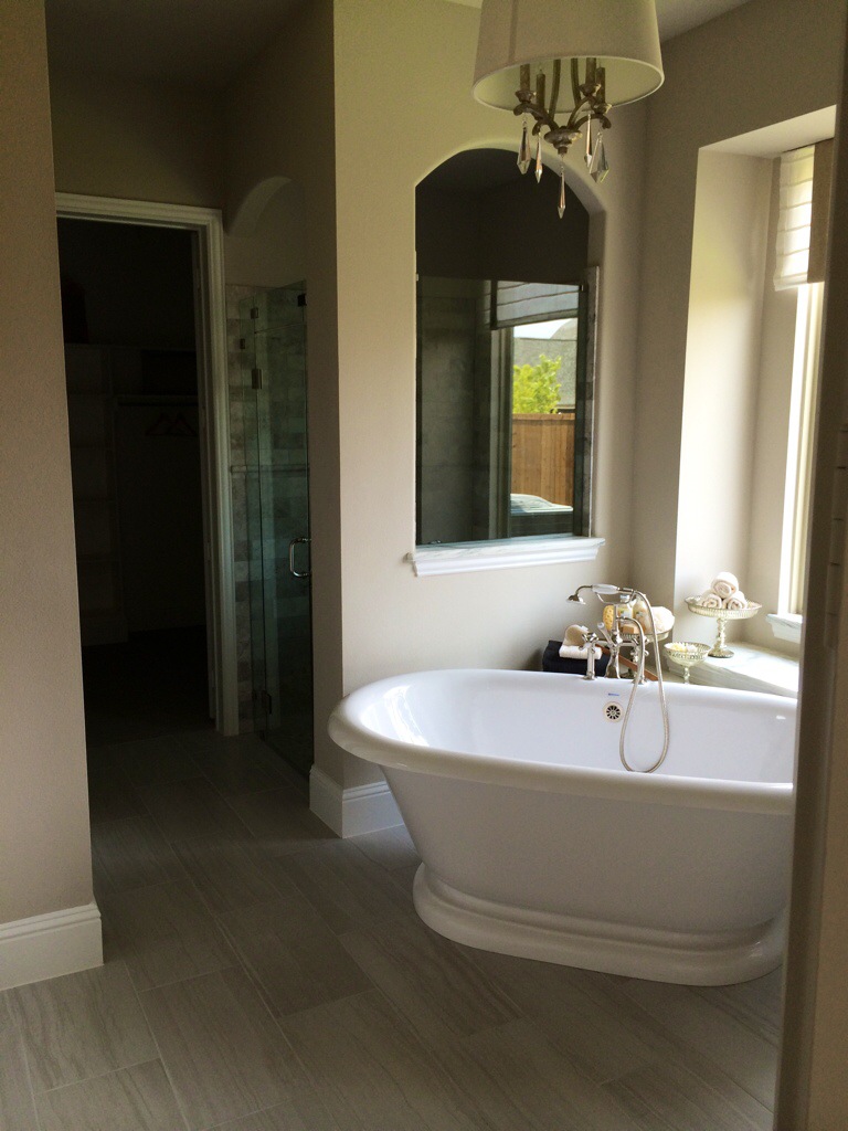 Shaddock Homes really takes into consideration of what a buyer truly wants and includes it in their plans. The modern stand alone tub has been very popular in the last couple years along with the tiled wood look.