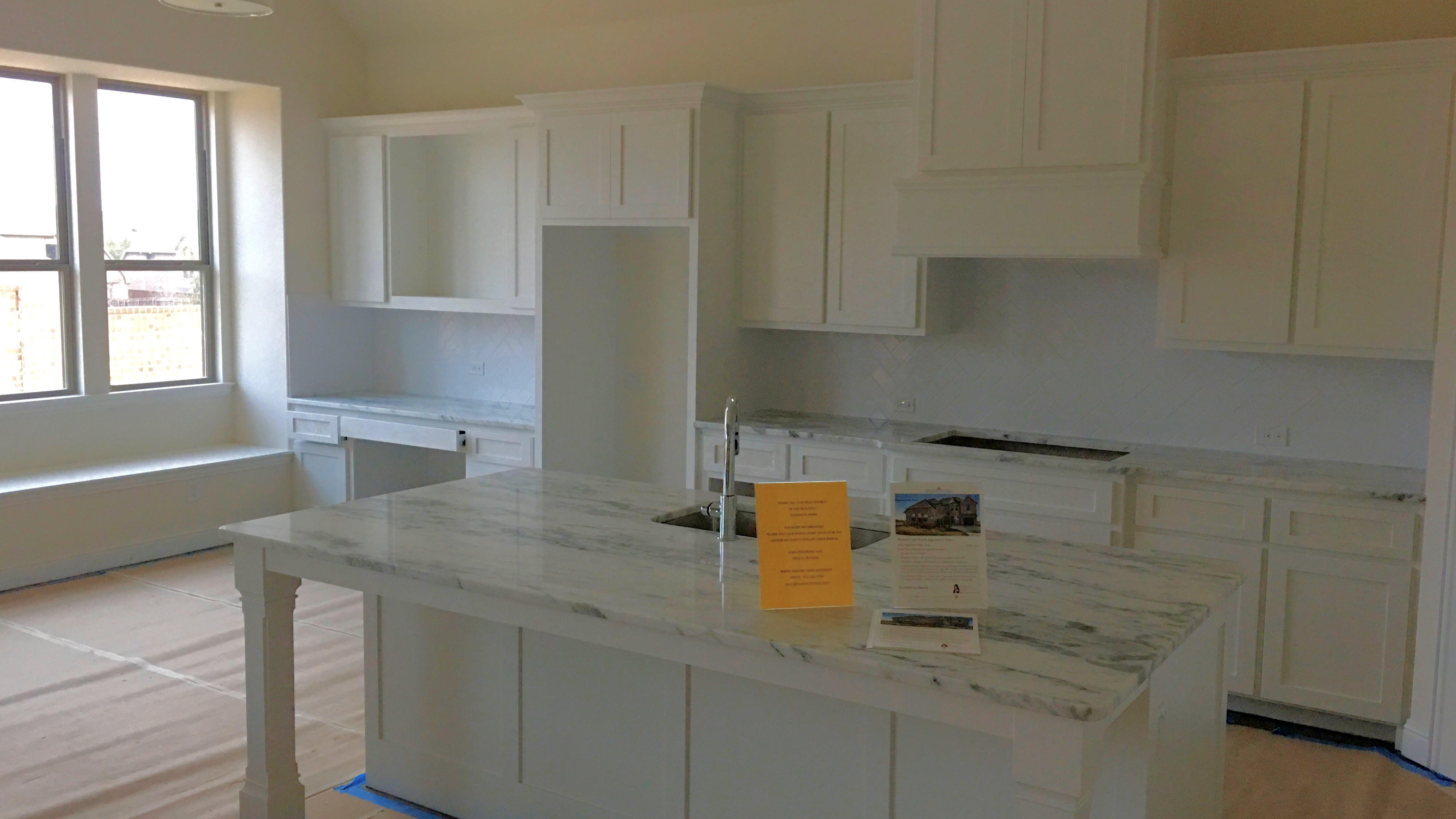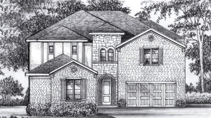 The very popular 5238 plan (shown above) by Shaddock Homes is one of my favorites in Phillips Creek Ranch. – Available for delivery in March, this 5 bedroom, 4.5 bath, 3 car garage, 3861 square foot home with dramatic spiral staircase in the foyer, rounded study, cathedral style ceilings, bench seat in kitchen nook, over sized walk in closet and Texas style media room, is listed at $667,287. My clients will get this for under $640,000!