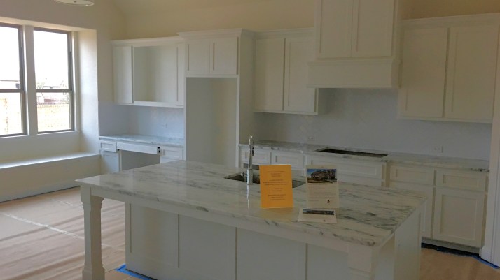 They are also the first builder to put some shelves in the kitchen where normally cabinets would be a fixture.