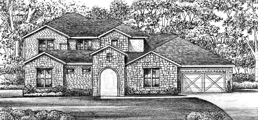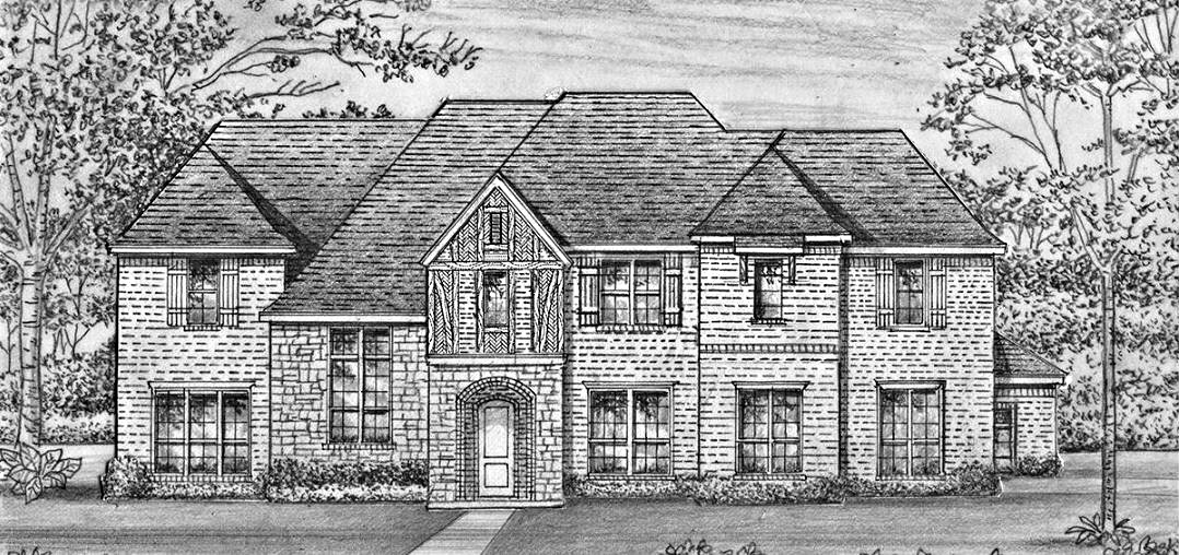 The 7410 Plan, shown below, will be ready for YOU in June! Just under 5000 sq ft, this 5 bed, 5.5 bath, Elegant French Tudor style estate, will have your neighbors jeoulous!