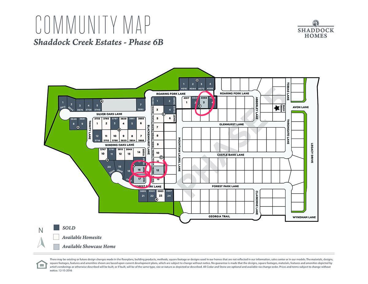 Plat Map of Shaddock Homes at Phillips Creek Ranch in Frisco.