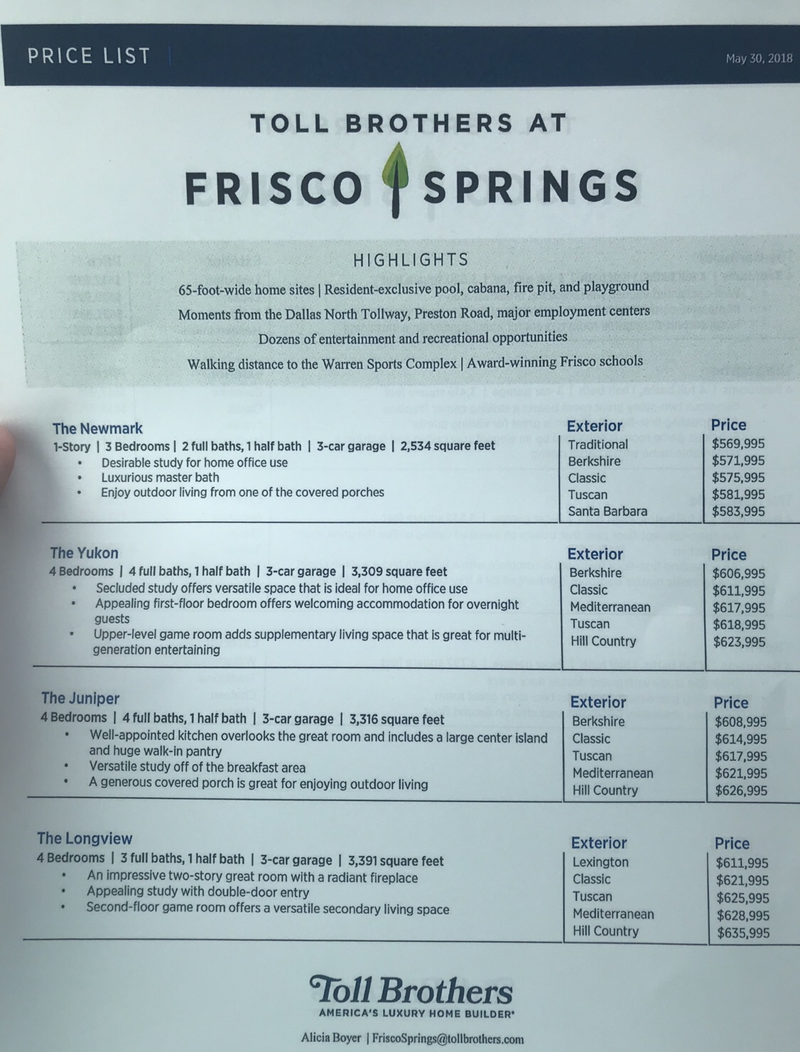 If you are looking to move to Frisco and are looking for a Toll Brothers quality home, Frisco Springs Grand Opening might be perfect for you!