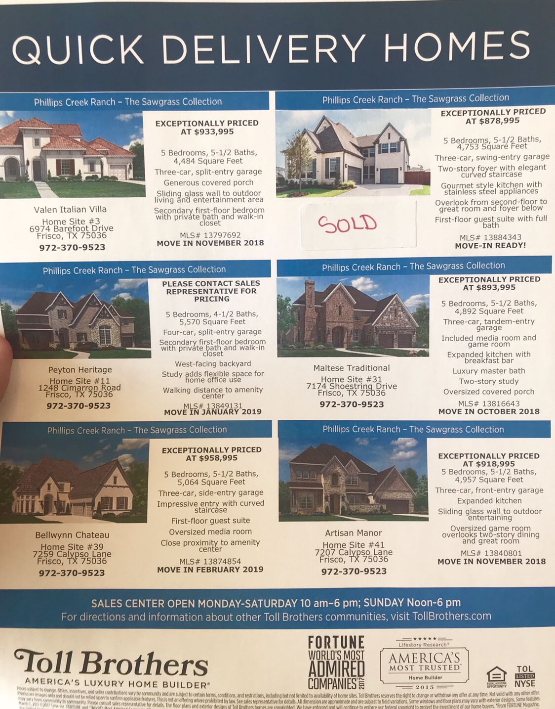 I visited the Toll Brothers model at Edgestone in Frisco today and was shocked that all 17 of their lots are accounted for!