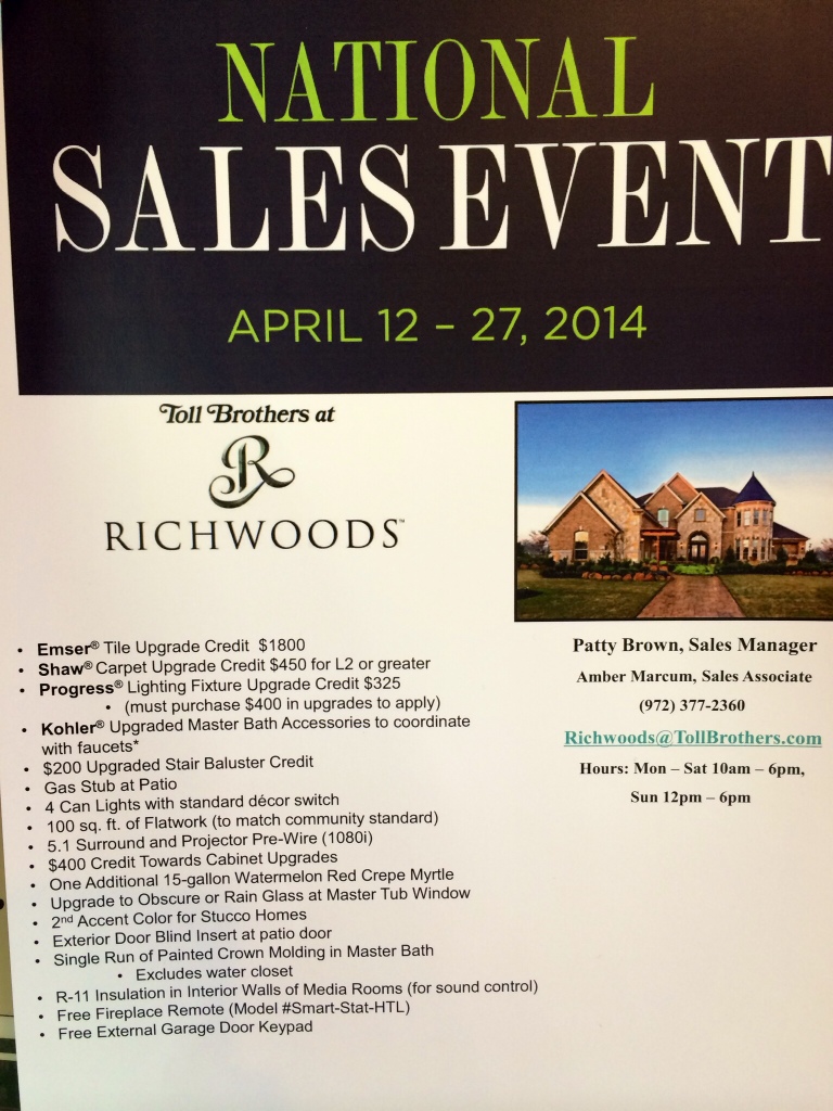 Toll Brothers at Edgestone in Frisco is closing out phase 1 lots and giving amazing incentives to make that happen.