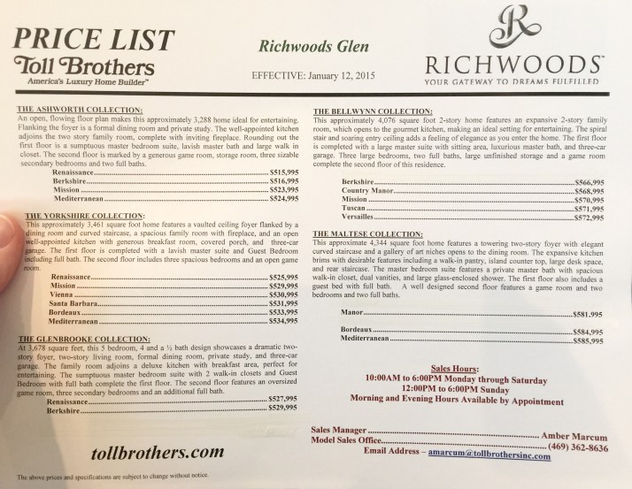 My best guess on the new Toll Brothers Lots and pricing will most likely be $25,000 more than what you see here due to the lot cost and demand.