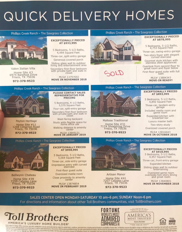 On top of all that, Toll Brothers opened the next to last phase they will be building in Phillips Creek Ranch. There are a lot of lots that are oversized available for these gorgeous massive new homes.